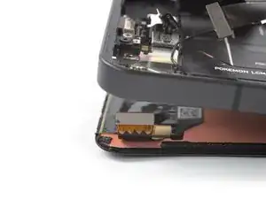 При поддевании крышки дочерней платы в следующем шаге будьте очень осторожны: избегайте чрезмерного рычага и не засовывайте инструмент слишком глубоко под крышку. В противном случае под ней проложен кабель дактилоскопа, который легко порвать.