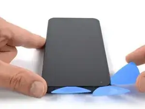 На этом этапе заднее стекло должно отделиться от рамки. Если по краям стекла остаётся сопротивление, используйте медиатор, чтобы отделить оставшийся клей.