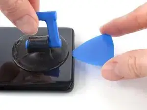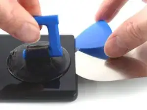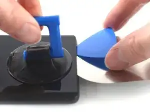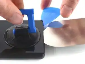 Ровно, с постоянной силой потяните за присоску и вставьте iFlex между экраном и рамкой.