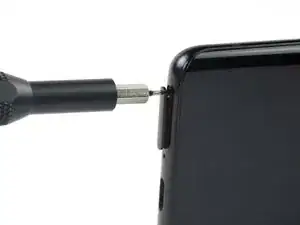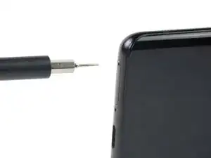 Вставьте инструмент для извлечения SIM‑лотка, биту или распрямлённую скрепку в отверстие лотка SIM-карты на нижнем крае телефона.