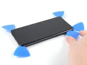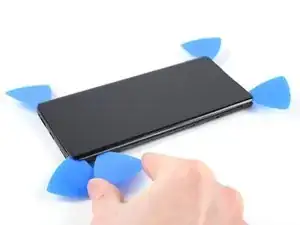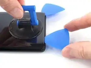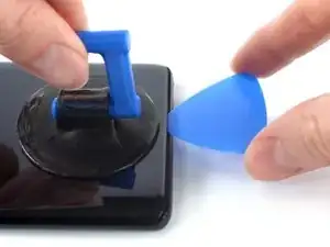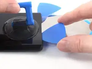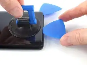 Если заднее стекло всё ещё плотно держится к рамке, проведите медиатором по всему периметру, пока стекло полностью не отделится.