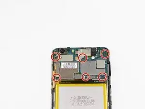 Снимите шесть винтов Phillips #000 2 мм с материнской платы.
