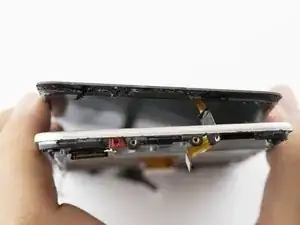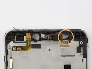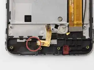 Сверху справа находится чёрный ленточный кабель в форме «Г». Снимите один винт Phillips #000 1 мм слева от ленточного кабеля.