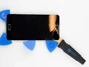 С помощью лопатки (Jimmy) и медиаторов аккуратно подденьте экран и снимите его с корпуса телефона.