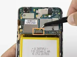 Отключите «Г»-образную вилку, соединяющую аккумулятор с платой.