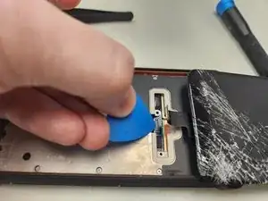 Используя инструмент для вскрытия, аккуратно отключите разъём ЖК-дисплея.