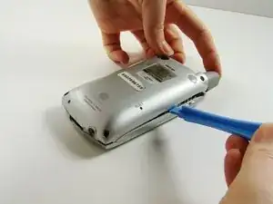 При помощи пластикового инструмента для вскрытия аккуратно отделите переднюю и заднюю части корпуса.