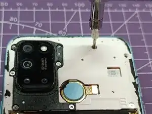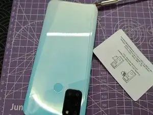 Используйте карту, если у вас нет инструмента для поддевания. Учтите, что вокруг датчика отпечатков пальцев также есть клей.