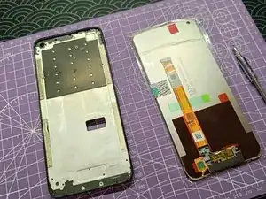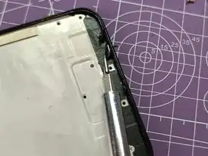 После съёма экрана используйте маленькую плоскую отвёртку, чтобы соскоблить по периметру и очистить остатки клея.