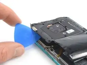 Вставьте пятую пластину и проведите её вдоль правого края телефона, чтобы разрезать оставшийся клей.