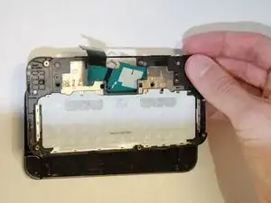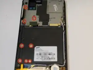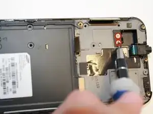 Выверните один винт, соединяющий плату с основанием телефона, используя крестообразную отвертку #00.