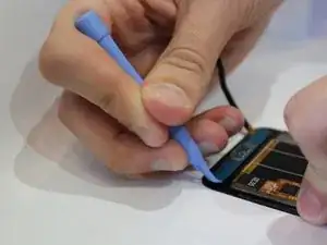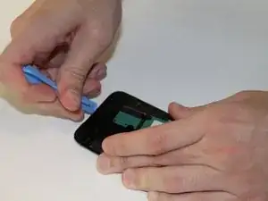 С помощью пластиковой лопатки подденьте по краям и отделите сенсорный экран от рамки экрана.