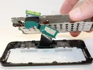 Чтобы снять шлейф слайдера, аккуратно отогните его от задней панели и извлеките панель.