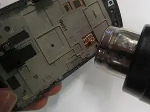 С помощью фена или теплового пистолета нагрейте телефон. Это размягчит клей, удерживающий экран, что позволит продолжить разборку устройства.