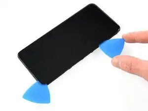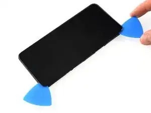Вставьте медиатор для вскрытия между экраном и задней крышкой по левой кромке рядом с отверстием для инструмента извлечения SIM.