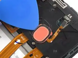 Используйте медиатор, чтобы поддеть и отсоединить датчик отпечатка пальца.