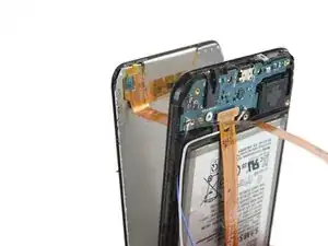 Пока не снимайте экран полностью. Шлейф дисплея все еще проходит через среднюю рамку.