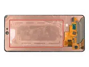 В подготовке к следующему шагу обратите внимание на прямоугольный участок клея, расположенный под экраном.