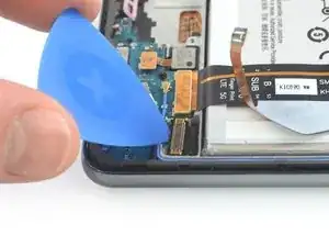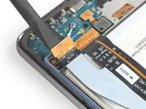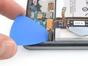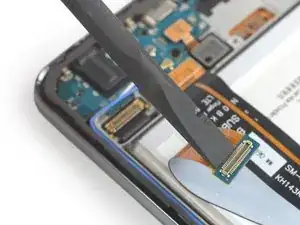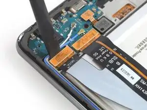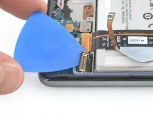 Осторожно отогните шлейф к верхней части телефона, чтобы получить доступ к разъёму экрана.