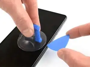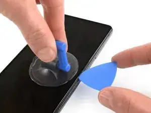 Поднимите экран с помощью присоски, чтобы создать небольшой зазор между экраном и рамой.