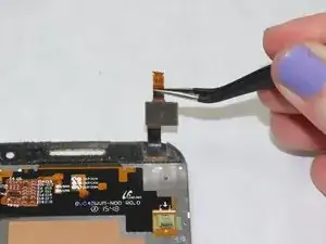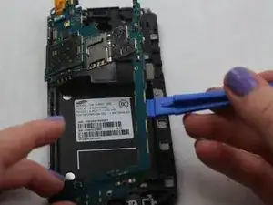 Подденьте пластмассовую панель, разделяющую дигитайзер и материнскую плату, инструментом для вскрытия iFixit.