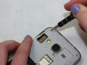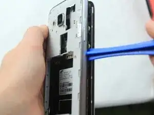 С помощью ногтя или плоского инструмента приподнимите заднюю крышку.