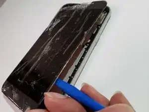 Используйте инструмент для открытия iFixit, чтобы приподнять экран с одной из вертикальных сторон телефона, и продолжайте аккуратно поддевать, пока экран не станет достаточно свободным для безопасного снятия.
