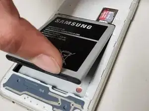 Вставьте ноготь в слот для снятия батареи и потяните назад, пока батарея не выскочит.