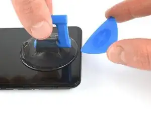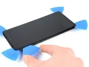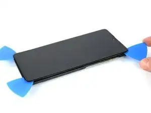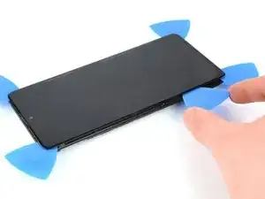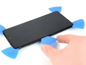 Вставьте медиатор для вскрытия в образовавшийся зазор между дисплеем и рамкой.