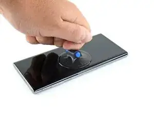 Приложите присоску к нагретой кромке дисплея как можно ближе к краю.
