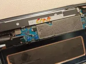 Удалите два винта, удерживающие материнскую плату в рамке.