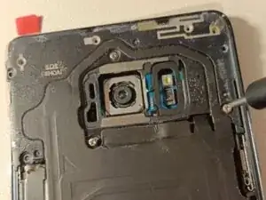 Нагрейте заднюю панель, используйте гитарную хватку и присоску, чтобы аккуратно удалить клей и снять заднюю панель.
