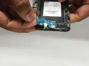 Отделите шлейф, соединяющий разъём зарядки и микрофон, вручную.