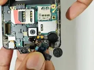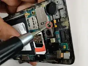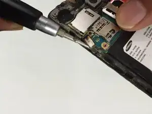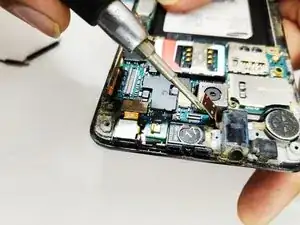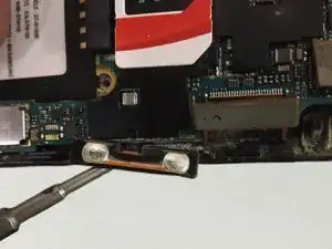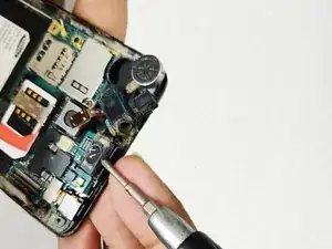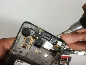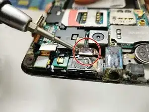 С помощью отвёртки аккуратно подденьте динамик, который приклеен к основанию двусторонним скотчем.