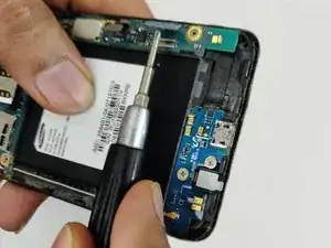 Снимите соединение для разъёма зарядки с помощью отвёртки.