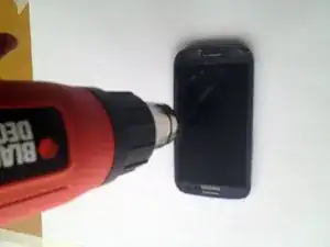 Фен расплавляет клей, фиксирующий стекло на рамке и дисплее.