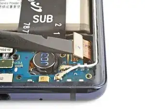 Проведите монтажной лопаткой по периметру телефона, чтобы разрезать клей, крепящий сенсорный модуль.