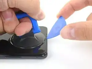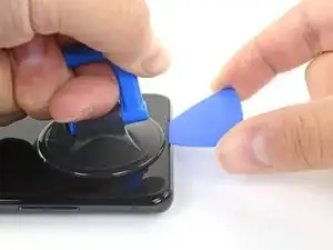 Потяните за присоску сильной, равномерной силой, чтобы создать зазор между стеклом дисплея и рамкой.