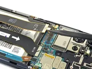Используйте лопатку, чтобы приподнять и отключить кабель дисплея.