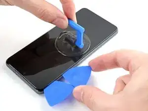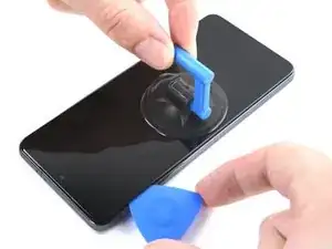 Поднимите экран с помощью присоски, чтобы создать небольшой зазор между экраном и рамкой.