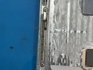 Подденьте край (у меня это была левая сторона) инструментом iSesimo. Заполните гнездо батареи спиртом и медленно подденьте батарею, стараясь не прикладывать чрезмерную силу. С помощью спирта батарея должна выйти относительно легко.
