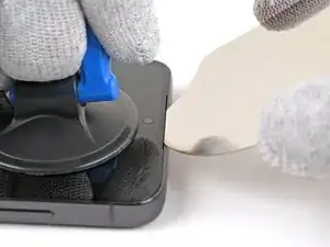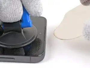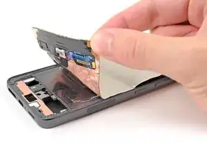 Переднее стекло отделится от дисплейного модуля, что вызовет изменение цвета на экране. Это нормально. Дисплейный модуль будет удалён на более позднем шаге.