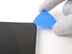 Зазор между передним стеклом и рамкой очень мал. Для создания начального зазора потребуется тонкий жёсткий инструмент, например iFlex.