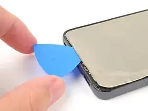 iFlex необходимо вставить лишь настолько, чтобы отделить стекло и создать начальный зазор. При слишком глубокой вставке можно повредить фронтальную камеру.