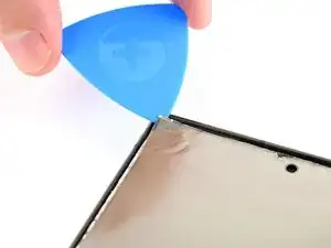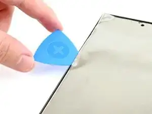 Зазор между передним стеклом и рамой очень мал. Вам понадобится тонкий жёсткий инструмент, например iFlex, чтобы создать начальный зазор.