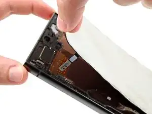 Вы можете использовать лопатку, чтобы отделить клей под дисплеем и облегчить его снятие, будучи осторожным, чтобы не повредить фронтальную камеру.
