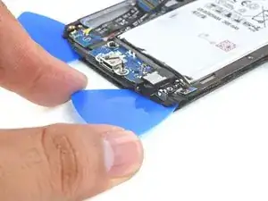 Проявляйте дополнительную осторожность при поддевании рядом с верхним краем, чтобы не повредить фронтальные датчики и слуховой динамик.