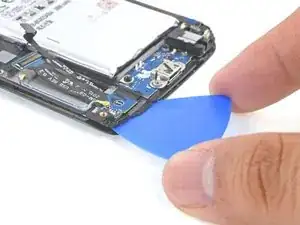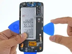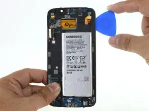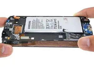Нажмите на заднюю часть батареи и поднимите края средней рамки, чтобы отделить её от остальной части телефона.