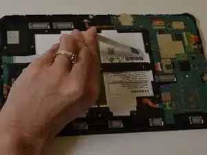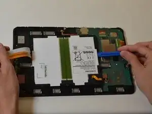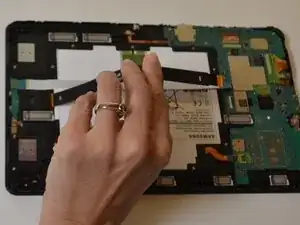 Используйте пластиковый инструмент для вскрытия, чтобы поддеть батарею.