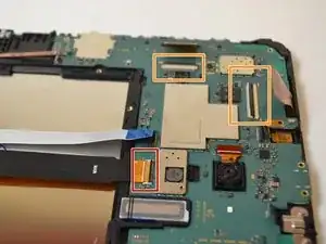 Используйте лопаточку, чтобы поднять фиксирующую защелку на трех разъемах ZIF для шлейфов.